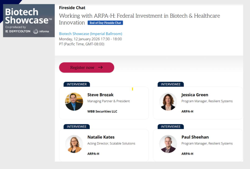 WBB Securities President Dr. Steve Brozak to Moderate ARPA-H Panel at Biotech Showcase 2026 on Federal Investment in Biotech Innovation